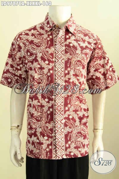 Jual Online Hem Batik Warna Merah Motif Bagus Proses Cap Warna ALam Ramah Lingkungan, Hem Batik Berkelas Desain Terbaru, Penampilan Makin Tampan Dan Bergaya [LD9787CA-XL]