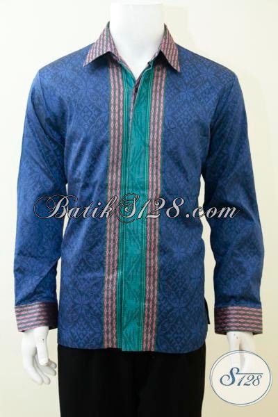 Jual Online Hem Tenun Biru Lengan Panjang Full Furing, Kemeja Tenun Mewah Pria Tampil Lebih Percaya Diri [LP2896NF-L]