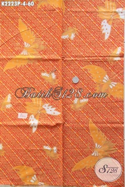 Jual Online Kain Batik Modern Warna Orange Motif Kupu Kwalitas Bagus Harga Murah Meriah, Batik Bahan Busana Wanita Untuk Tampil Lebih Modis [K2223P-200 x 110 cm]