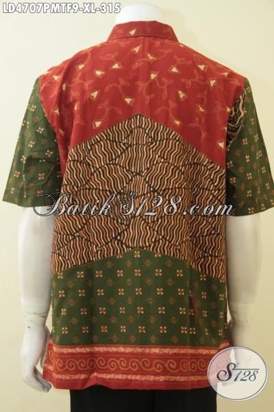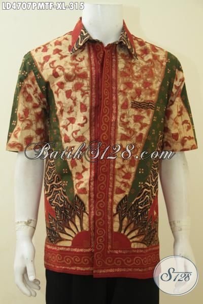 Jual Online Kemeja Batik Kombinasi Tulis Pake Furing, Hem Batik Lengan Pendek Istimewa Buat Kerja Dan Acara Formal [LD4707PMTF-XL]