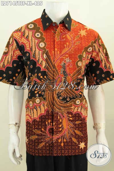 Jual Online Kemeja Batik Lengan Pendek Mewah, Baju Batik Istimewa Khas Jawa Tengah, Produk Pakaian Batik Motif Bagus Tulis Soga Harga 425K Daleman Full Furing [LD7145TSF-XL]