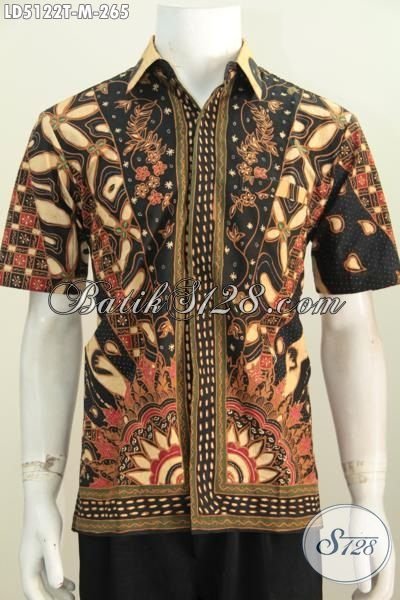Jual Online Kemeja Batik Lengan Pendek Motif Klasik Nan Elegan, Baju Batik Berkelas Tinggi Proses Tulis Buat Kerja Dan Kondangan Lelaki Muda [LD5122T-M]