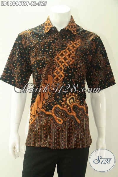 Jual Online Kemeja Batik Lengan Pendek Tulis Soga Khas Jawa Tengah, Baju Batik Solo Premium Full Furing Untuk Pria Dewasa Tampil Gagah Dan Berkelas [LD13036TSF-XL]