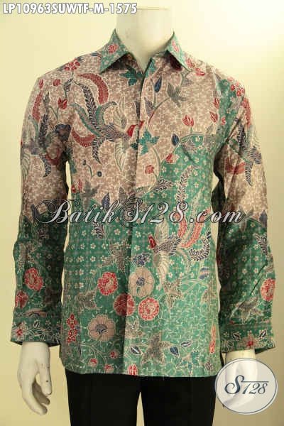 Jual Online Kemeja Batik Mewah Jawa Tengah Halus Lengan Panjang Full Furing, Busana Batik Tulis Motif Klasik Bahan Sutra, Cocok Untuk Acara Formal Tampil Mewah Dan Berkelas [LP10963SUWTF-M]