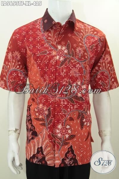 Jual Online Kemeja Batik Premium Warna Merah, Pakaian Batik Tulis Motif Terbaru Yang Bikin Pria Terlihat Sempurna Dilengkapi Daleman Full Furing Semakin Berkelas [LD5653TF-XL]