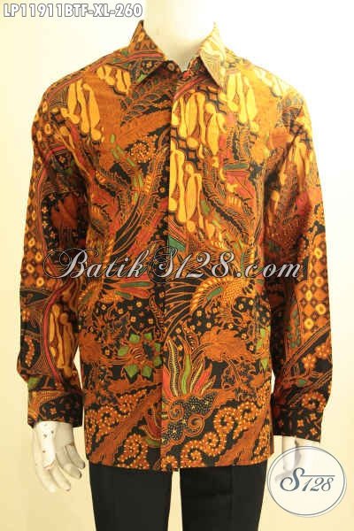Jual Online Kemeja Batik Pria Halus Motif Mewah Kombinasi Tulis, Pakaian Batik Tangan Panjang Full Furing Nan Berkelas Bisa Untuk Kondangan Maupun Ngantor [LP11911BTF-XL]