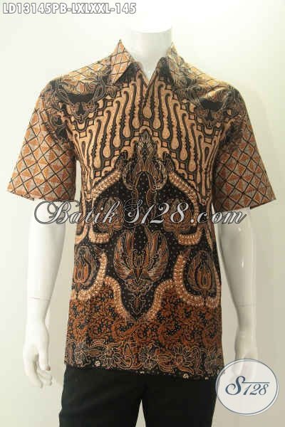 Jual Online Kemeja Batik Pria Motif Elegan Desain Keren Dan Berkelas, Pakaian Batik Solo Asli Berbahan Halus Model Lengan Pendek, Pas Banget Untuk Seragam Kantor Maupun Acara Resmi [LD13145PB-XXL]