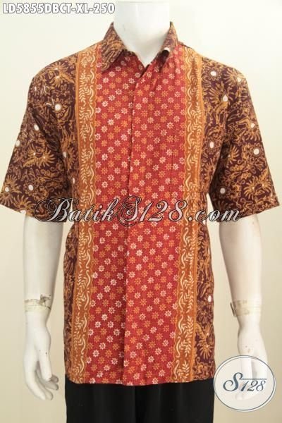Jual Online Kemeja Lengan Pendek Batik Cap Tulis Istimewa Berbahan Kain Dolby, Baju Batik Kwalitas Premium Motif Kombinasi Proses Cap Tulis Tampil Lebih Modis [LD5855DBCT-XL]