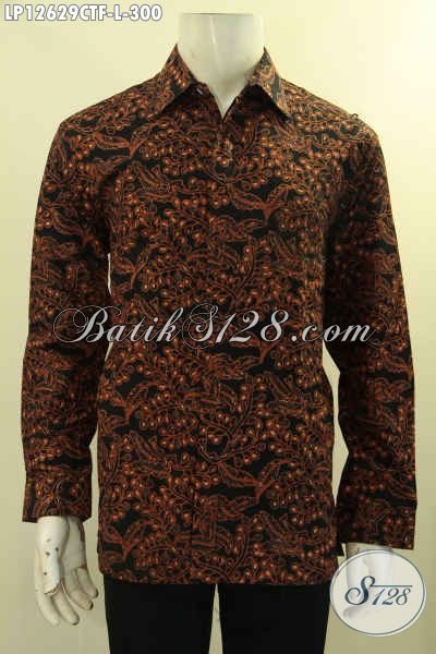 Jual Online Offline Kemeja Lengan Panjang Pria Berbahan Batik Solo Halus Jenis Cap Tulis, Baju Batik Istimewa Daleman Full Furing Harga Terjangkau [LP12629CTF-L]