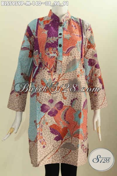 Jual Online Pakaian Batik Blus Nan Istimewa, Produk Baju Batik Trendy Kerah Shanghai Bahan Halus Proses Printing, Cocok Untuk Seragam Kerja [BLS5959P-M]