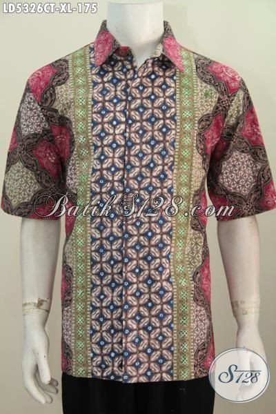 Jual Online Pakaian Batik Cowok Terbaru Kwalitas Istimewa Trend Mode Terkini, Baju Batik Lengan Pendek Cap Tulis Bahan Adem Nyaman Di Pakai [LD5326CT-XL]