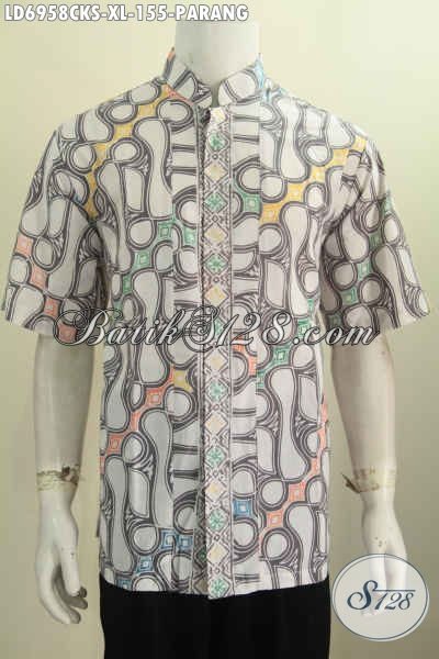 Jual Online Pakaian Batik Kerja Model Kerah Shanghai Lengan Pendek Motif Parang Proses Cap Untuk Penampilan Lebih Istimewa [LD6958CKS-XL]