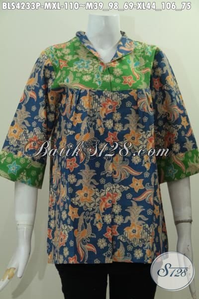 Jual Online Pakaian Batik Modern Berbahan Halus Desain Istimewa Untuk Wanita Muda Dan Dewasa, Baju Batik Halus Motif Elegan Proses Printing Untuk Ke Pesta [BLS4233P-M , XL]