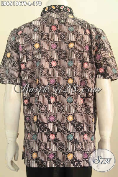 Jual Online Pakaian Batik Nan Istimewa, Pakaian Batik Modis Lengan Pendek Dasar Hitam Proses Cap Tulis Desain Motif Berkelas Cocok Untuk Seragam Kantor [LD6513CT-L]
