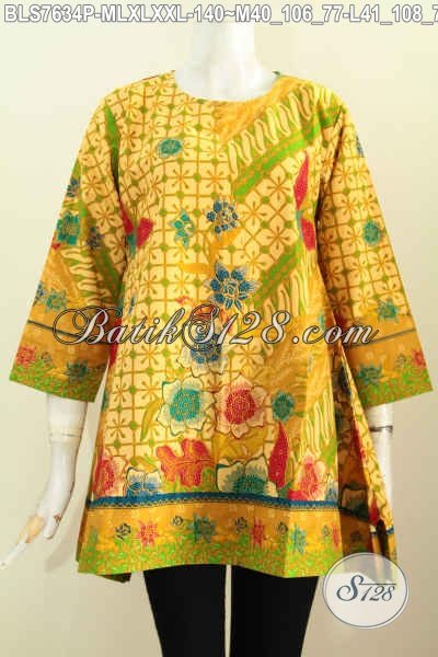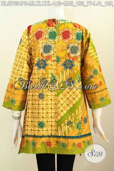 Jual Online Pakaian Batik Wanita Terkini, Aneka Baju Batik Blus Model Kotak 2017 Yang Bikin Wanita Terlihat Anggun Mempesona [BLS7634P-M , L , XL , XXL]