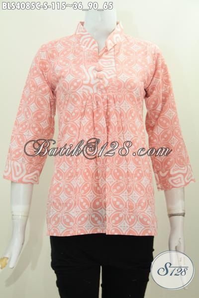 Jual Online Pakaian Blus Warna Lembut Nan Berkelas, Berbahan Batik Motif Modern Yang Halus Proses Cap Berpadu Desain Kerah Shanghai Bikin Penampilan Makin Trendy [BLS4085C-S]