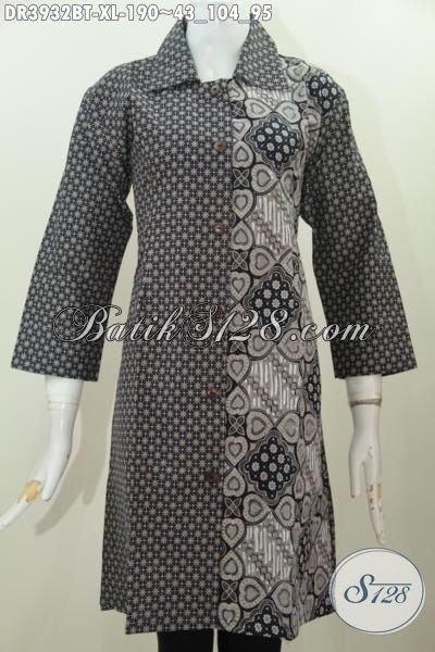 Jual Online Produk Dress Batik Terbaru Desain Mewah Kombinasi Dua Motif Elegan Kombinasi Tulis Membuat Wanita Nampak Mempesona [DR3932BT-XL]