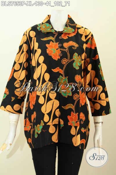 Jual Pakaian Batik Atasan Wanita, Blus Kerah Bulat Kancing Depan Proses Printing Bahan Adem Nyaman Buat Ke Kantor [BLS7653P-XL]