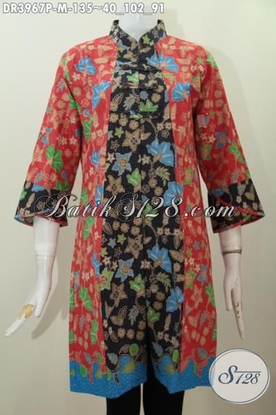 Jual Pakaian Batik Bagus Harga Murah, Dress Batik Solo Proses Printing Motif Trendy Dengan Warna Modern Bikin Cewek Lebih Berkelas [DR3967P-M]