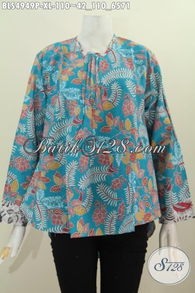 Jual Pakaian Batik Blus Lengan Panjang Warna Biru Desain Keren Motif Unik Proses Printing Yang Mampu Bikin Wanita karir Terlihat Istimewa [BLS4949P-XL]