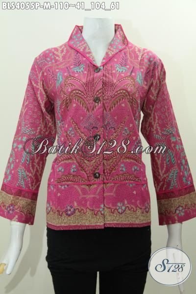 Jual Pakaian Batik Blus Model Elegan Berkelas, Produk Busana Batik Wanita Terkini Proses Printing Desain Formal Tampil Makin Berkharisma [BLS4055P-M]