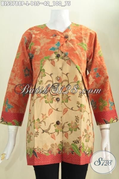Jual Pakaian Batik Kerja Elegan Desain Mewah Kombinasi Blus Dan Balero, Baju Batik Jawa Istimewa Motif Mewah Proses Printing Harga Terjangkau [BLS3788P-L]