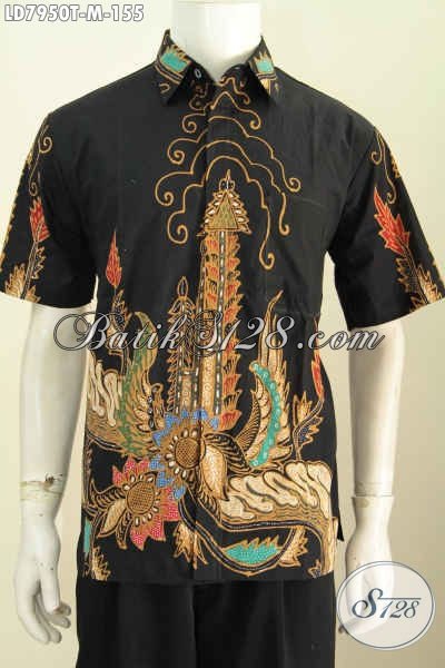 Jual Pakaian Batik Modern Dasar Hitam, Baju Batik Elegan Kwalitas Istimewa Proses Tulis Motif Trendy Hanya Untuk Pria Masa Kini [LD7950T-M]