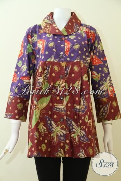 Jual Pakaian Batik Paling Di Cari Wanita Karir, Blus Batik Print Motif Dan Model Keren Kwalitas Bagus Harga Murah [BLS2508P-XL]