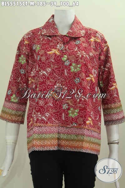 Jual Pakaian Batik Warna Merah Dengan Motif Mewah, Baju Batik Blus Kerah Bulat Proses Cap Tulis Kwalitas Premium Pake kancing Besar Harga 185K [BLS5515CT-M]
