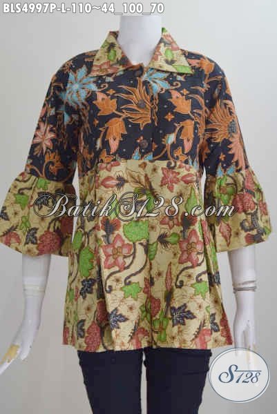 Jual Pakaian Blus Dua Motif, Baju Batik Kerah Lancip Berbahan Adem Proses Printing Yang Modis Untuk Kerja Dan Jalan-Jalan [BLS4997P-L]