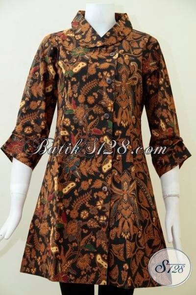 Jual Pakaian Wanita Model Dress Cocok Untuk Kebutuhan Resmi, Baju Batik Coklat Klasik Elegan Berkelas [DR1580BT-S]