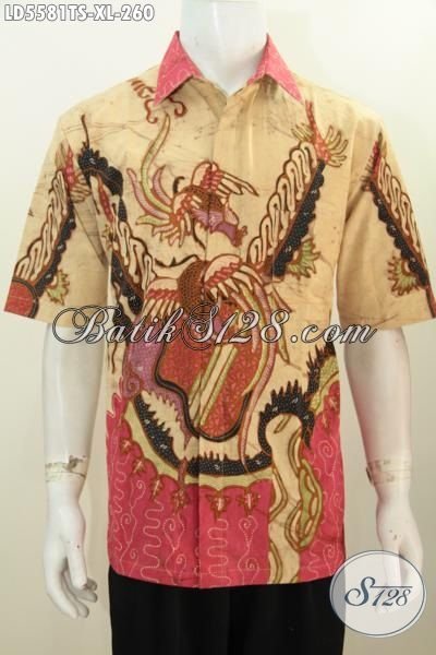 Jual Produk Baju Batik Seragam Kerja Pegawai Ukuran XL, Pakaian Batik Tulis Soga Lengan Pendek Motif Mewah Untuk Penampilan Makin Wah [LD5581TS-XL]