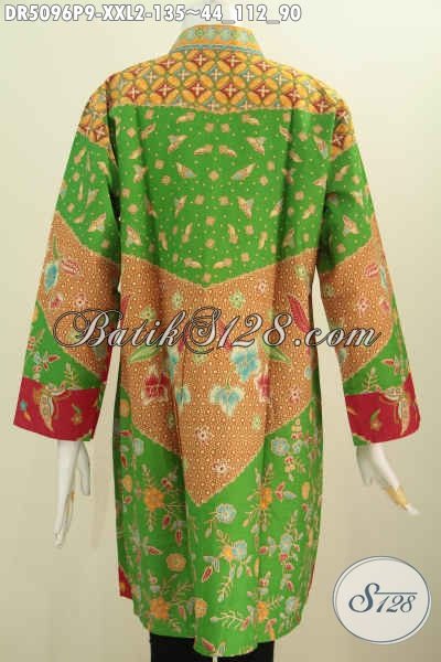 Jual Produk Batik Jumbo, Busana Batik Elegan 3L Bahan Halus Motif Klasik Warna Trendy Proses Printing, Spesial Buat Wanita Gemuk Masa Kini [DR5096P-XXL]