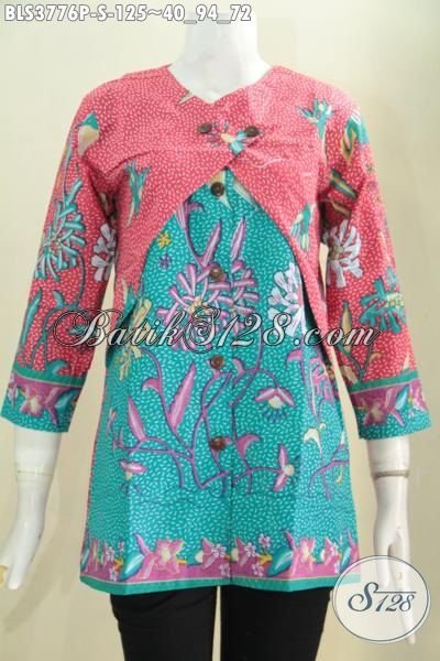 Jual Produk Batik Wanita Terbaru Terbaru, Baju Batik Paling Keren Desain Kombinasi Blus Dan Balero Berpadu Dua Warna Cerah Berkelas Tampil Makin Modis, Proses Print [BLS3776P-S]
