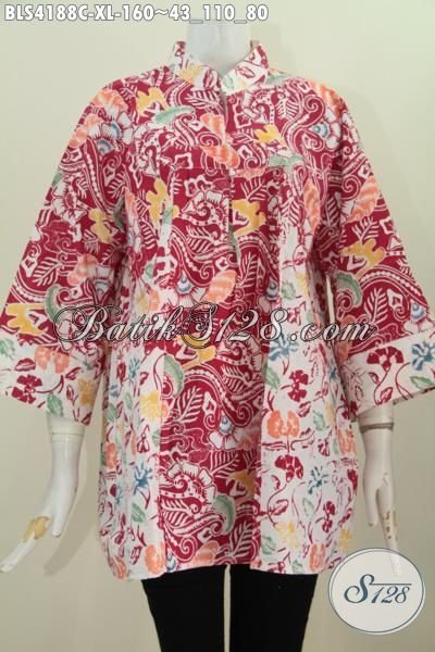 Jual Produk Busana Batik Wanita Terkini Model Kerah Shanghai Tanpa Kancing, Baju Blus Batik Modis Dua Motif Penunjang Penampilan Perempuan Masa Kini [BLS4188C-XL]