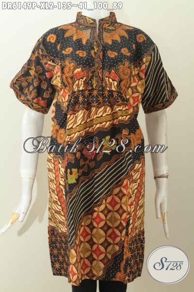 Jual Produk Pakaian Batik Modis Dan Elegan, Dress Batik Kerah Shanghai Wanita Dewasa Bahan Halus Lengan Pendek Harga 135K [DR6149P-XL]