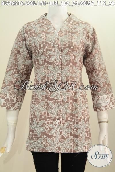 Jual Produk Pakaian Batik Wanita Terbaru, Baju Batik Blus Plisir Kerah Polos Istimewa Untuk Kerja Kantoran Motif Trendy Proses Cap [BLS4351C-L , XXL]