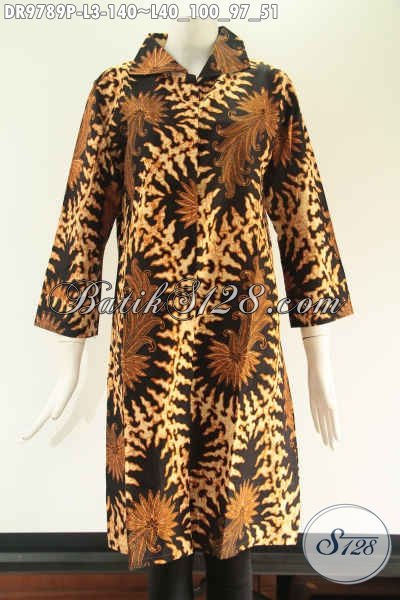 Jual Tunik Batik Buatan Solo Aslli Motif Bagus Jenis Print Model Kerah Pakai Kancing Depan Sampai Bawah Dengan Lengan 7/8, Menunjang Penampilan Lebih Berkelas [DR9789P-L]