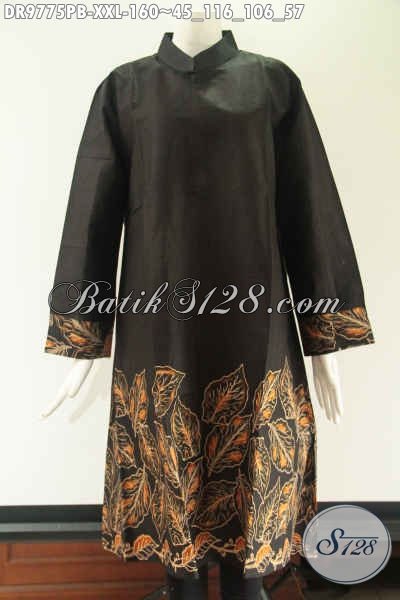 Jual Tunik Batik Modern Kwalitas Bagus Harga Terjangkau, Hadir Dengan Model Kerah Shanghai Lengan 7/8 Pakai Resleting Di Bagian Punggung Cocok Buat Kerja [DR9775PB-XXL]