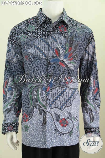 Juragan Baju Batik Online, Jual Kemeja Halus Motif Mewah Lengan Panjang Kombinasi Tulis Untuk Pria Gemuk Ukuran XXL [LP7726BTF-XXL]
