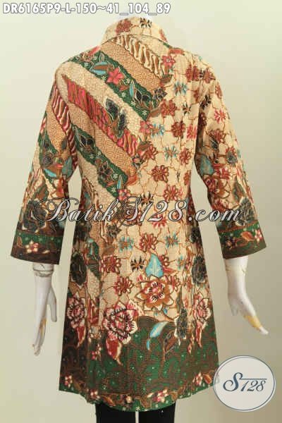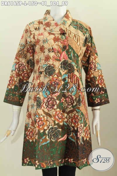 Juragan Baju Batik Online Paling Up To Date, Jual Dress Kerah Miring Halus Motif Mewah Proses Printing Hanya 150K, Cocok Buat Ke Kantor [DR6165P-L]