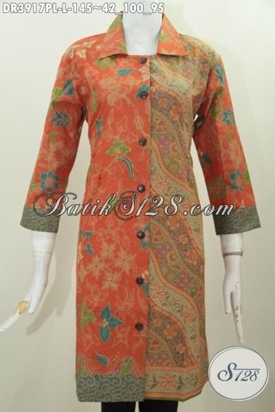 Juragan Baju Batik Online Pilihan Lengkap, Jual Produk Terbaru Dress Kerah Lancip Kombinasi Dua Motif Printing Desain Mewah Bikin Wanita Tampil Beda [DR3917PL-L]