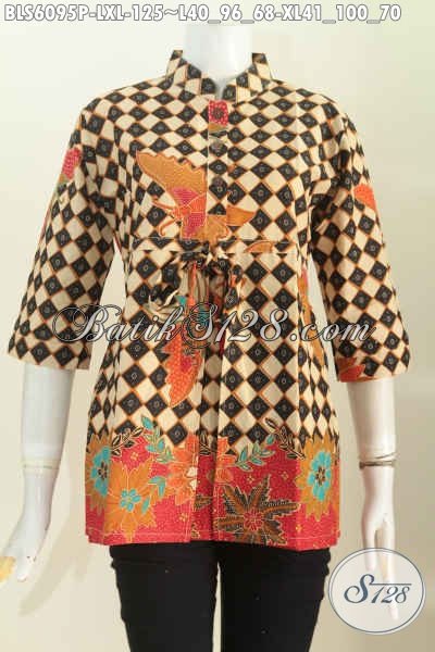 Juragan Batik Online Paling Up To Date, Jual Blus Trendy Kerah Shanghai Lengan 3/4 Asli Solo Harga 125 Ribu [BLS6095P-L , XL]
