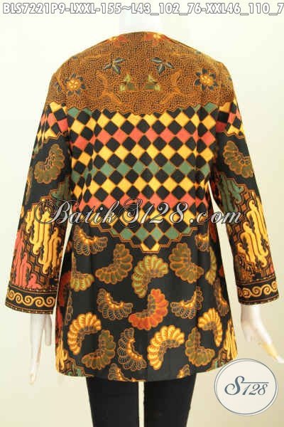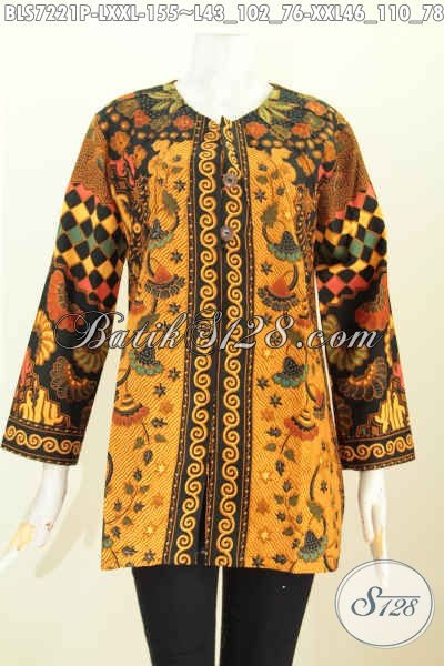 Juragan Batik Online, Sedia Blus Tanpa Krah Elegan Motif KLasik Pakai Ofneisel Menunjang Penampilan Lebih Rapi Dan Istimewa [BLS7221P-L , XXL]