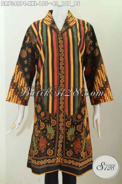 Juragan Batik Online, Sedia Dress Sinaran Kerah Langsung Bahan Halus Proses Printing Untuk Kerja Wanita Gemuk Hanya 155K [DR7349PC-XXL]