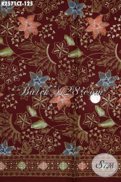 Kain Batik Dasar Merah Motif Mewah Proses Cap Tulis Hanya 125 Ribu, Bahan Aneka Busana Wanita Dan Pria [K2571CT-200x110cm]