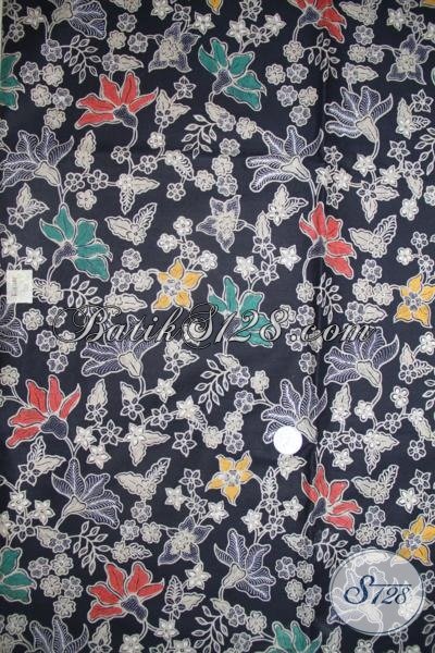 Kain Batik Elegan Dengan Dasar Hitam, Batik Solo Motif Bunga Tren Masa Kini Cocok Untuk Bahan Busana [K1421BT]
