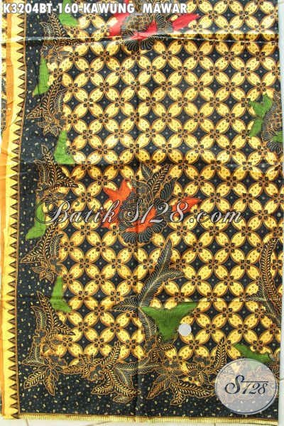 Kain Batik Elegan Motif Kawung Mawar, Batik Kombinasi Tulis Asli Solo Bahan Busana Wanita Pria Karir Harga 160K [K3204BT-240x115cm]