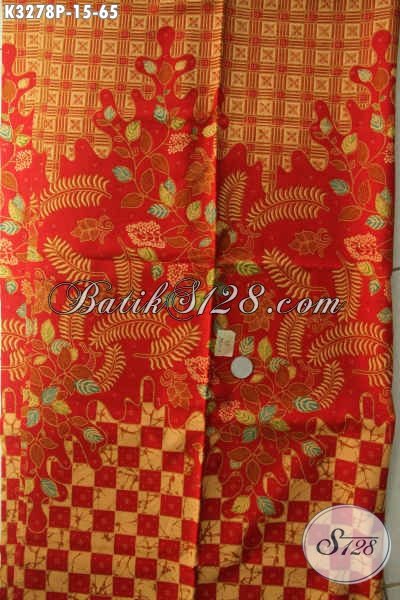 Kain Batik Elegan Warna Merah Motif Mewah Proses Printing, Batik Kain Halus Untuk Busana Formal, Menunjang Penampilan Terlihat Berkelas [K3278P-200x115cm]