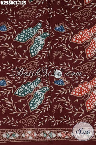 kain Batik Halus Warna Merah Marun Motif Kupu Proses Cap Tulis, Di Jual Online 125K Bahan Pakaian Cewek Nan Modis [K2580CT-200x110cm]